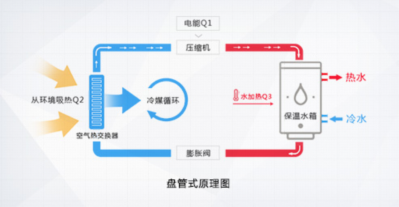 格力空氣能熱水器,傳承空調(diào)核心科技,以消耗一部分電能為補(bǔ)償,通過熱力循環(huán),從周圍環(huán)境的低品位能源(空氣源)取得熱量,通過壓縮機(jī)將其輸送至冷凝器,釋放給水箱內(nèi)的水將其加熱。它的工作原理與空調(diào)制熱時(shí)的原理相類似,只是空調(diào)是 從自然環(huán)境中吸取熱量,供給室內(nèi)空氣,而空氣能熱水器是以這部分熱量加熱生活熱水,其能效比是電熱水器的4倍,是燃?xì)鉄崴鞯?倍,是太陽能熱水器的近2倍,是一種新型的高效、節(jié)能、環(huán)保的熱水器產(chǎn)品。一度電的付出,4倍熱量的收獲!